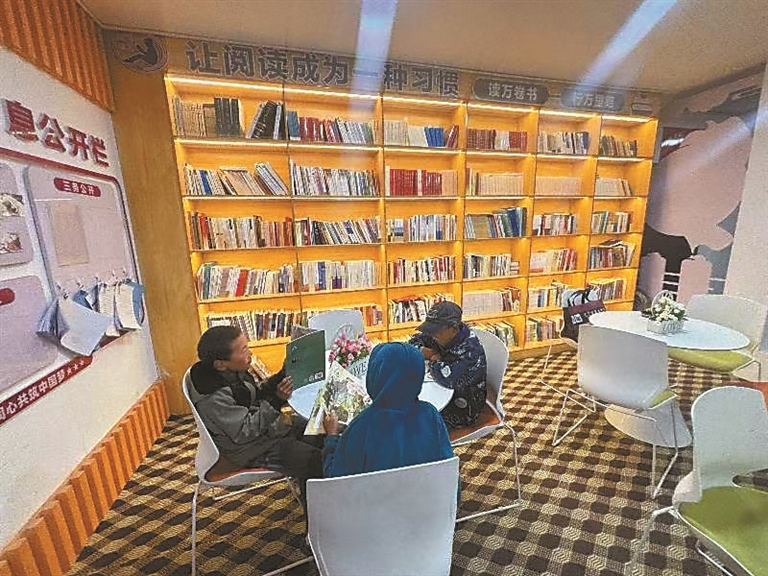 图为在嘉黎县阿扎镇德吉、雅杰社区党群活动中心牧家书屋,孩子们翻阅书籍。记者 汪纯 摄