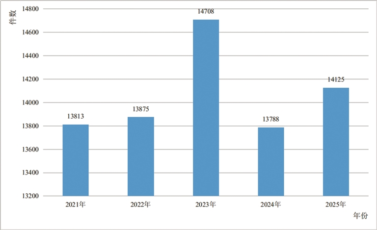 2021年—2025年全区检察机关办案总量变化趋势图