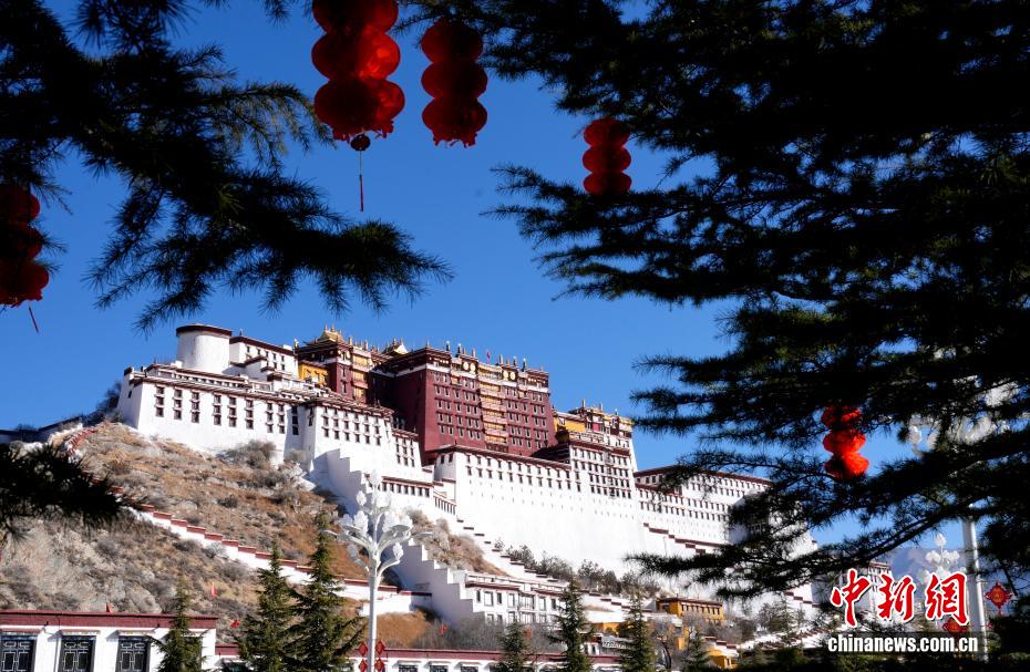 2月3日,西藏拉萨布达拉宫广场,红灯笼装点节日氛围。随着春节、藏历新年的临近,拉萨城区大街小巷被精心装点,年味愈发浓郁。中新社记者 李林 摄