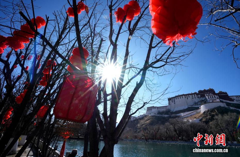 2月3日,西藏拉萨布达拉宫脚下的宗角禄康公园,红灯笼装点节日氛围。随着春节、藏历新年的临近,拉萨城区大街小巷被精心装点,年味愈发浓郁。中新社记者 李林 摄