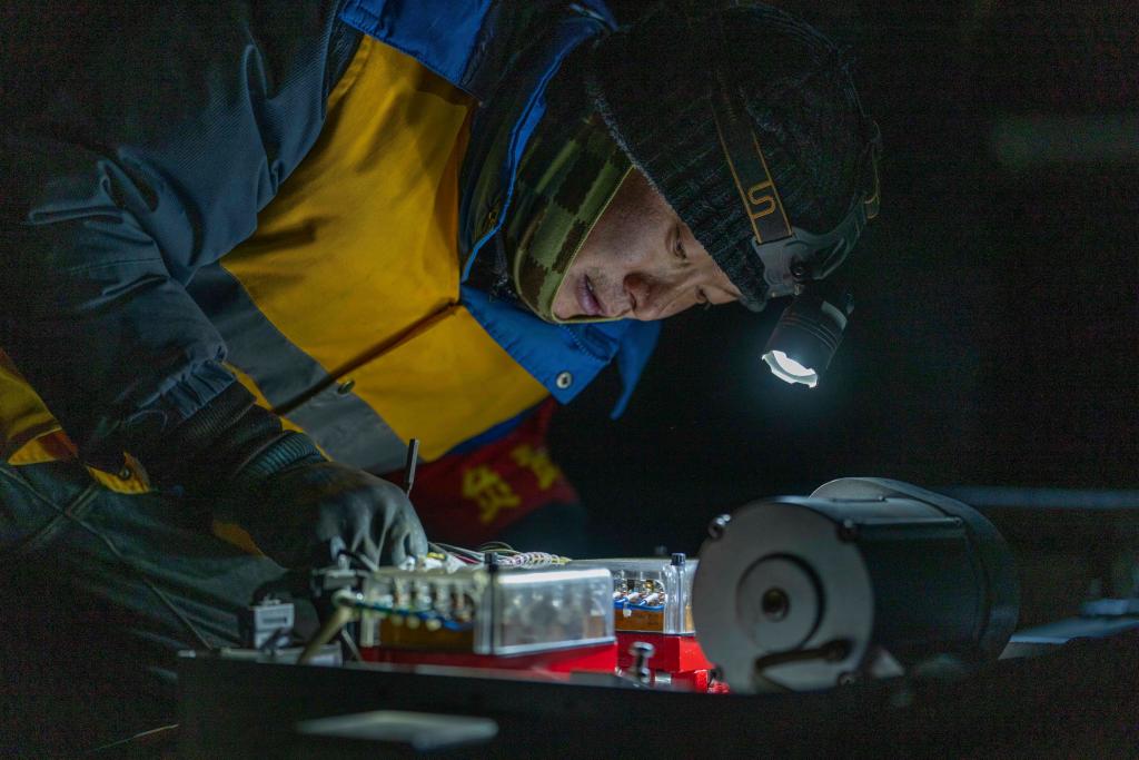 “先确认断路器状态。”王富生半蹲在送电端箱盒前,冻得发紫的手缓缓打开电缆盒。成格乐的头灯照亮箱盒内密密麻麻的端子排,他用内六角扳手将早已断裂的小枕木和锈蚀的过轨卡扣逐一取下。王富生随即将新的箱盒引接线安装固定好。