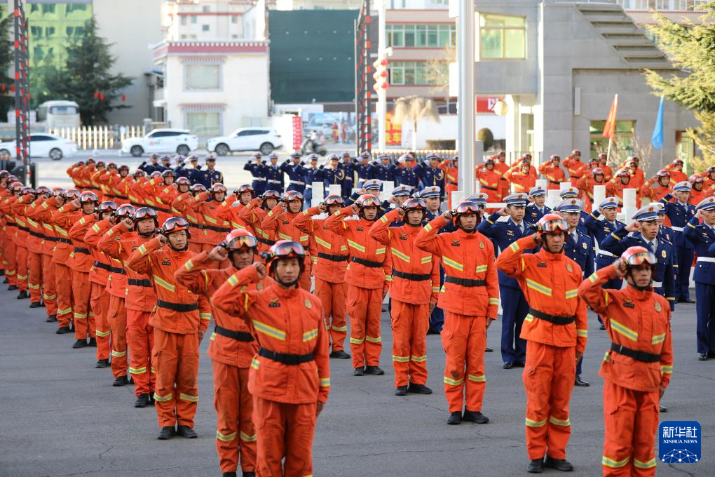 这是2月5日拍摄的拉萨消防救援机动支队挂牌仪式现场。新华社发(郑龙 摄)