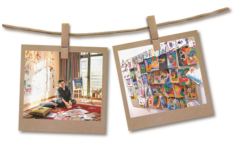 图为嘎瓦占堆在工作室接受本报记者采访。本报记者 欧珠次仁 冯琳琳 郑璐 摄图为嘎瓦占堆工作室内挂满学生的绘画作品。记者 欧珠次仁 冯琳琳 郑璐 摄