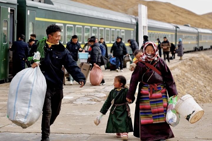 “妻子带着两个女儿在那曲上学,我去接她们回来过年。现在能在家门口上火车方便多了,我们护路的工作干得也更有劲头。”秋觉说。