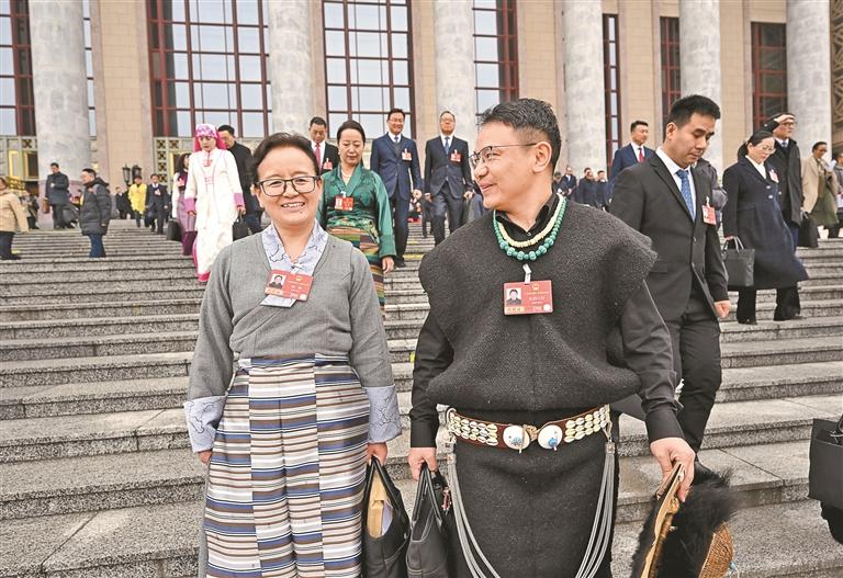 ——西藏全国人大代表出席十四届全国人大四次会议开幕会侧记
