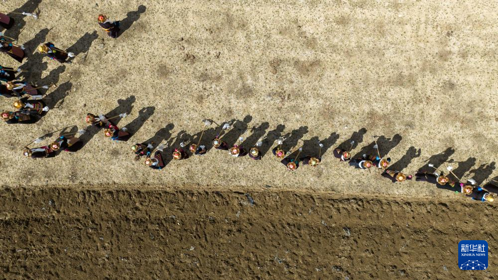 3月16日,西藏山南市结巴乡结巴村举行春耕仪式(无人机照片)。新华社记者 晋美多吉 摄