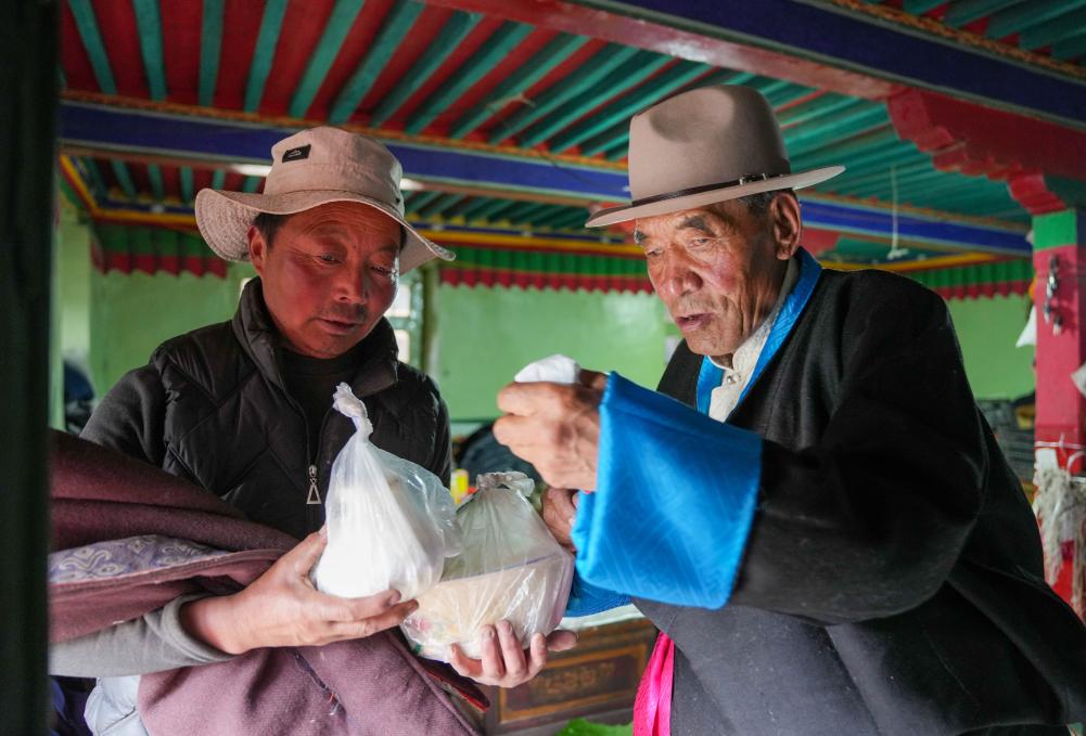 达瓦片多和女婿在整理酥油(3月12日摄)。