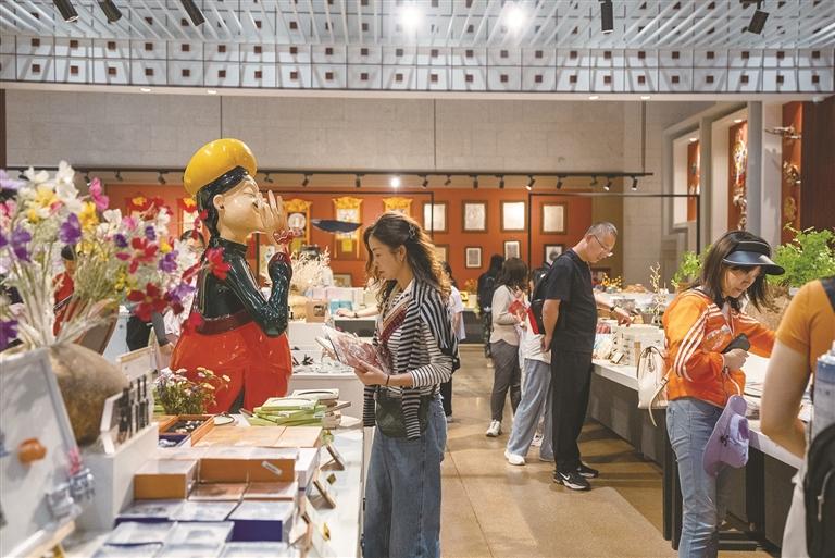 游客正在购买文创产品。