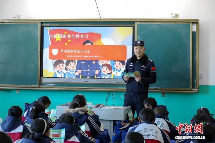 图为里孜边检站民警走进课堂,开展“全民国家安全·争做国家安全小卫士”主题活动。刘海东 摄