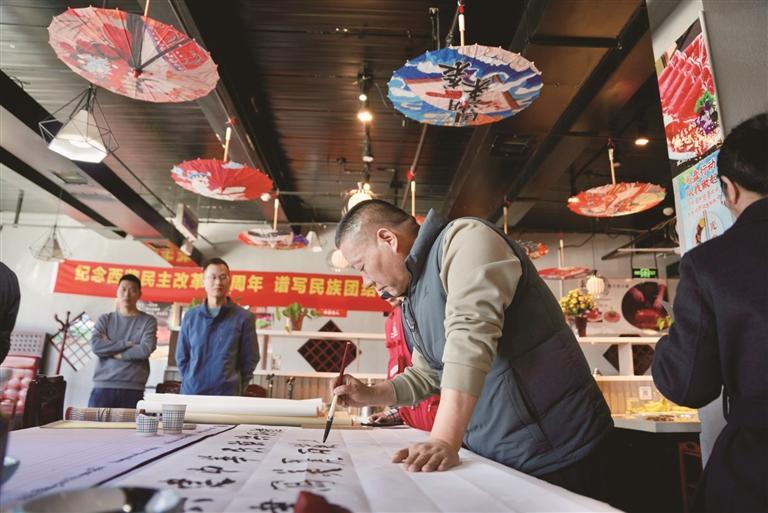 活动现场,暖意融融、气氛热烈。爱心餐饮企业精心准备了暖心餐食,传递社区温情。自治区政协委员南杰旺扎、罗布元旦和多位书法老师即兴挥毫泼墨,创作了一批以民族团结为主题的书法佳作赠予一线环卫工人与各族群众代表,既彰显了中华优秀传统文化的博大精深,也展现了各民族文化交融共生的和谐画卷。