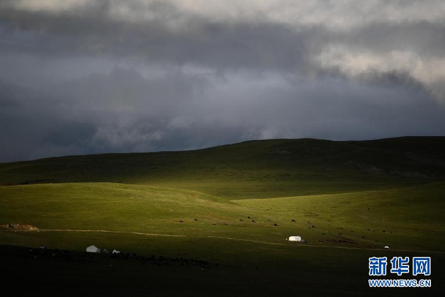 夏日时节,位于青海省果洛藏族自治州玛沁县当洛乡的草原生机勃勃,牛羊、帐篷点缀其间,牧歌回荡在高原牧场。