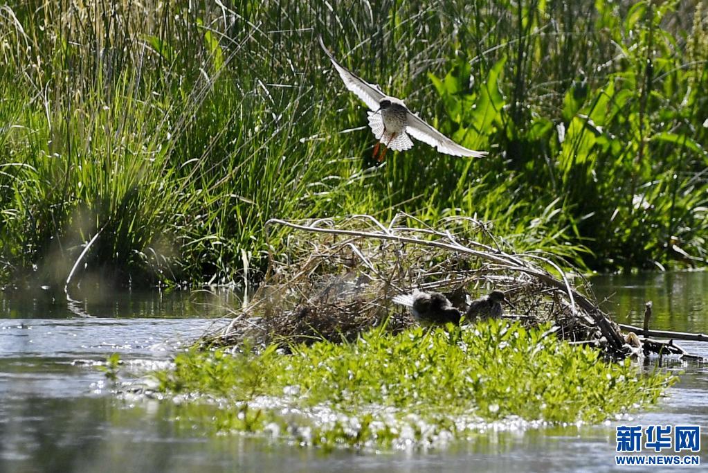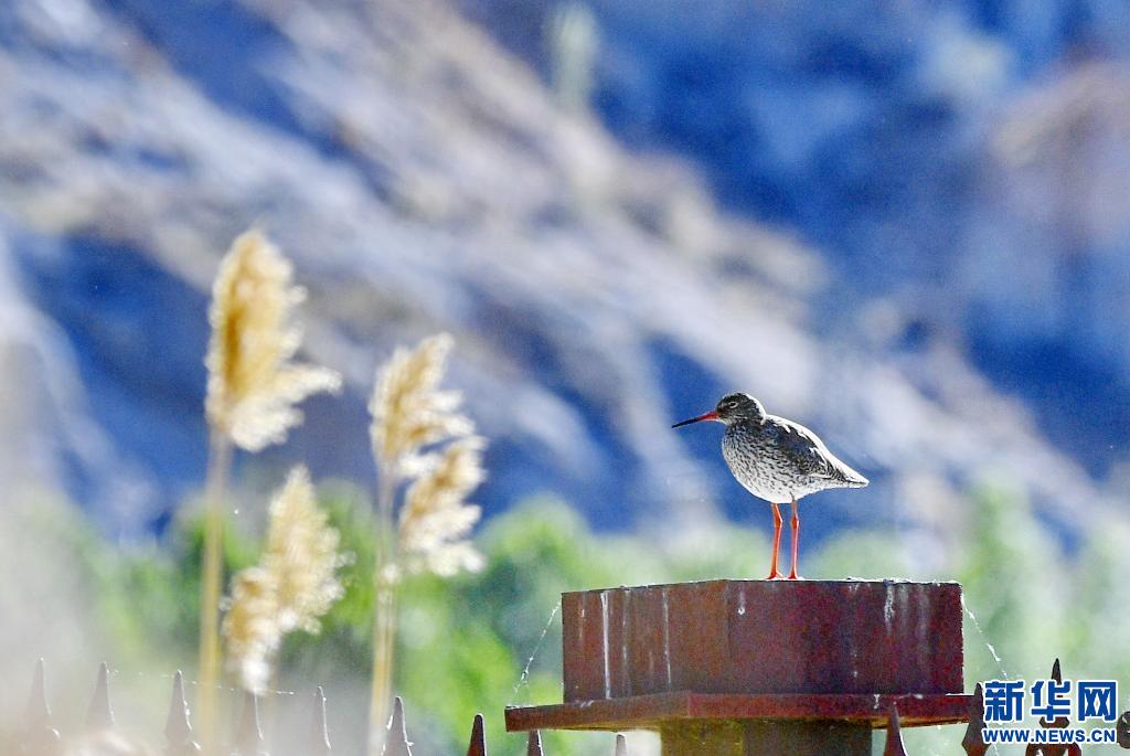 在拉鲁湿地拍摄的红腿鹬(6月2日摄)。新华社记者 张汝锋 摄