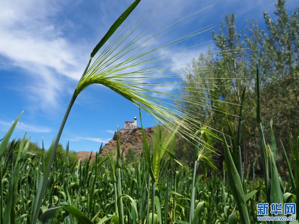 站在西藏历史上第一块农田萨热索当上看西藏第一座宫殿雍布拉康(6月24日摄)。新华社记者 金一清 摄