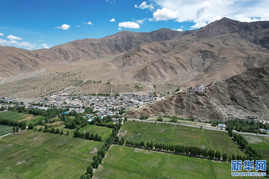 远眺雍布拉康和门中岗社区(无人机照片,6月24日摄)。新华社记者 司源 摄