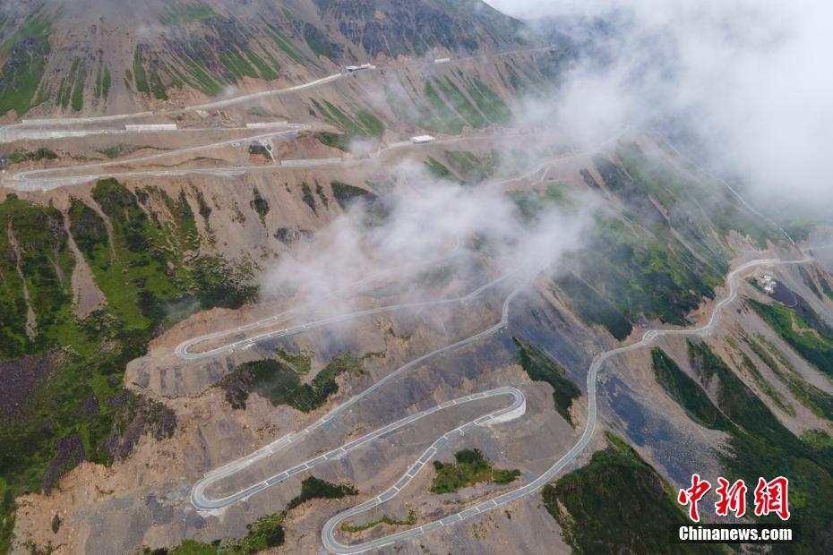图为云中俯瞰西藏玉麦乡日拉山及翻山公路。江飞波 摄