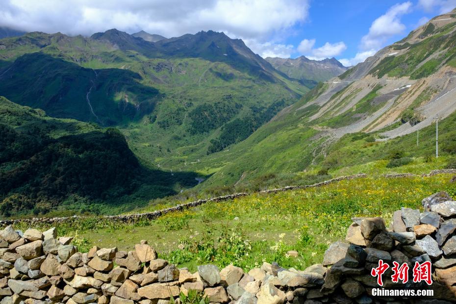 玉麦乡隶属于西藏自治区山南市隆子县,地处隆子县东北部,是中国最偏远的乡镇之一。近日,中新网记者驱车前往玉麦乡,翻过恰拉山及日拉山垭口,便正式进入玉麦了。8月的玉麦花草繁茂、飞瀑流云,郁郁葱葱的原始森林环绕着玉麦乡数十栋民居,风光秀丽。图为进入西藏玉麦前,途径海拔约5000米的恰拉山风光。江飞波 摄