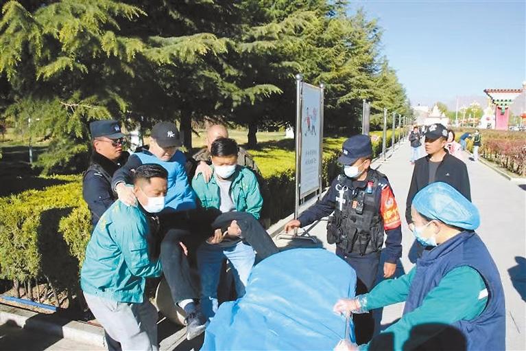 图为今年7月,拉萨市公安局城关分局广场派出所民警在布达拉宫广场救助一名“高反”严重的游客。