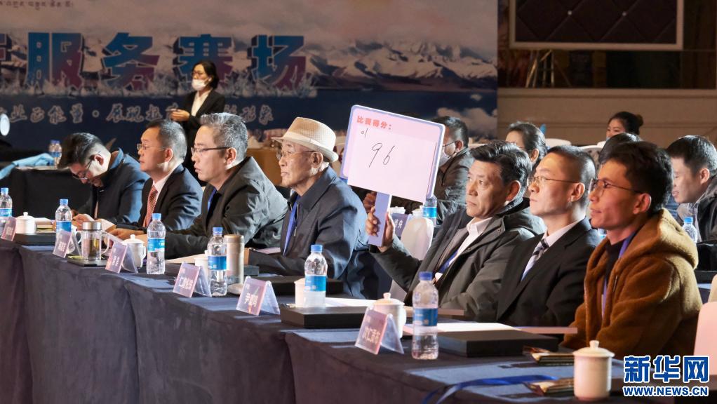 11月23日,第三届拉萨旅游行业服务技能大赛中评委为参赛选手打分。 新华网 贡桑央吉(实习生) 摄