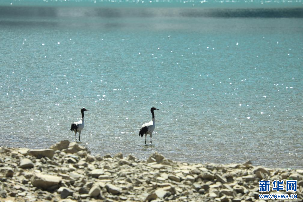 3月4月,在西藏墨竹工卡县境内拍摄的黑颈鹤。新华网发 洛克 摄