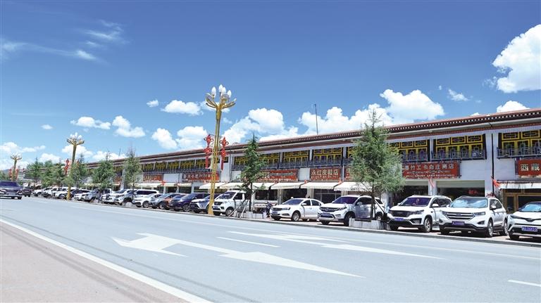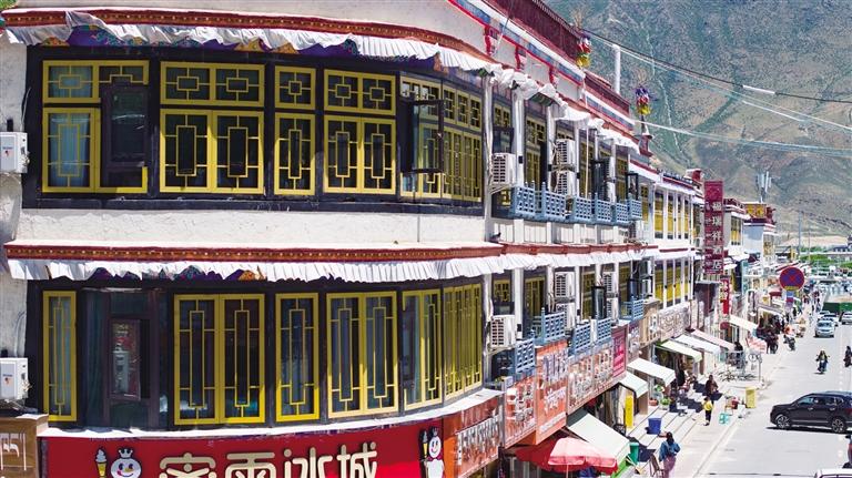 值得关注的是,此次修复及新建的商铺外立面特意采用传统藏式绘画工艺,选用新藏式风格,旨在弘扬独特的当地文化,使其在现代城市中展现新活力。通过外立面装饰改造形成统一风格后,老旧街区的藏式特色更加凸显。