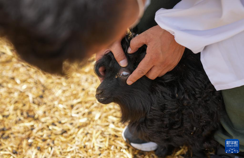 边坝县黑山羊养殖基地的工作人员在检查黑山羊羊羔健康状况(7月20日摄)。新华社记者 晋美多吉 摄