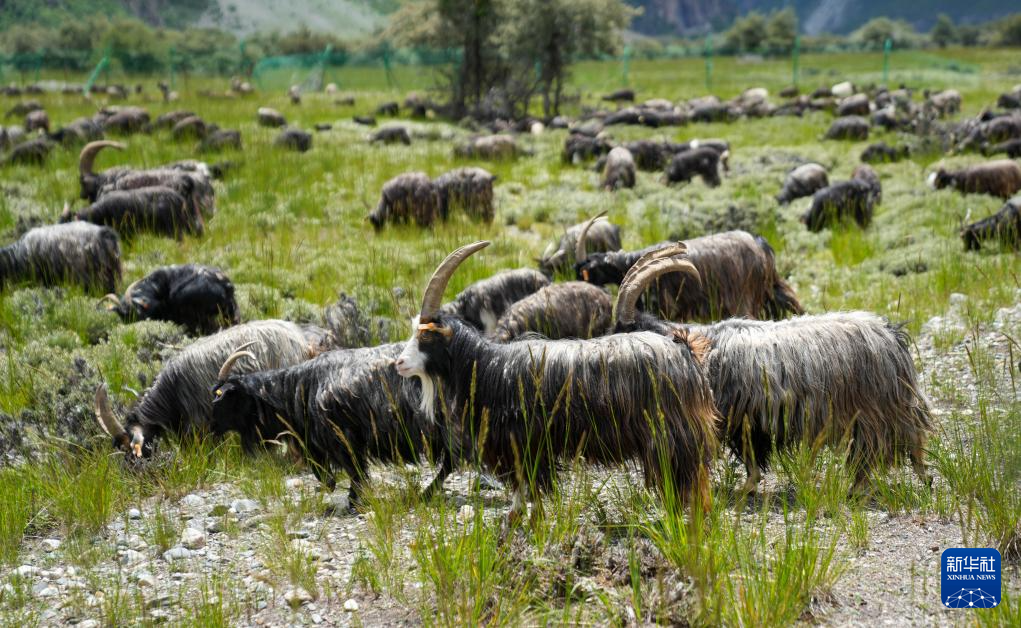 这是边坝县黑山羊养殖基地的边坝黑山羊(7月20日摄)。新华社记者 晋美多吉 摄