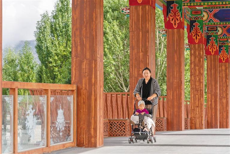 市民在两岛内河绿色生态廊道提升工程仙足廊桥散步。 新华社记者 旦增尼玛曲珠 摄