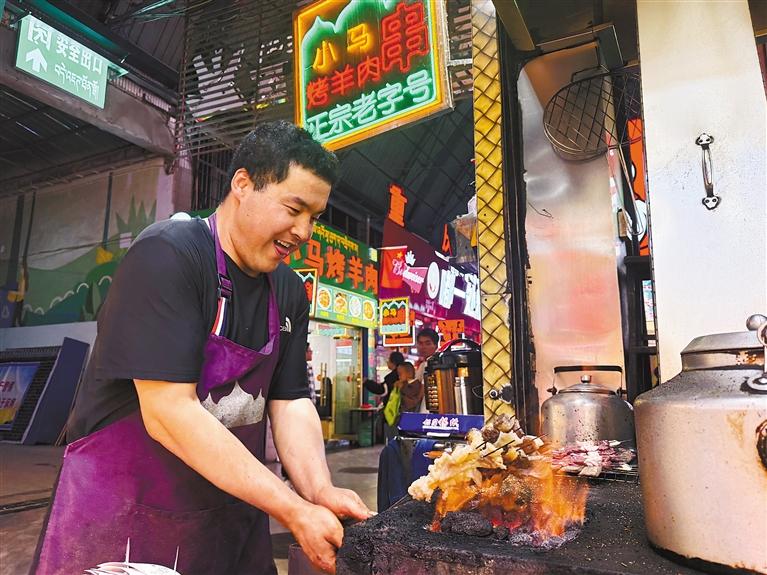 拉萨天海夜市烧烤店内,店员正在烤肉。记者 旦增兰泽 摄
