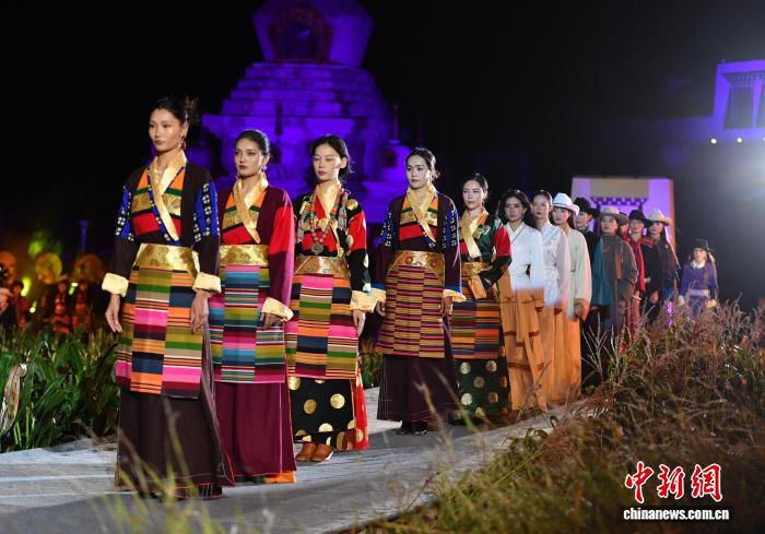 20日晚,一场田园中的走秀让大众再次感受到乡城女性最具代表性的民族服饰“疯装”的文化内涵和动人魅力。伴随着夜幕下的绚丽灯光,当地藏族村民和来自青海、甘肃、西藏等地的藏族模特身着盛装,演绎一场融合传统与现代的“民族时尚秀”。