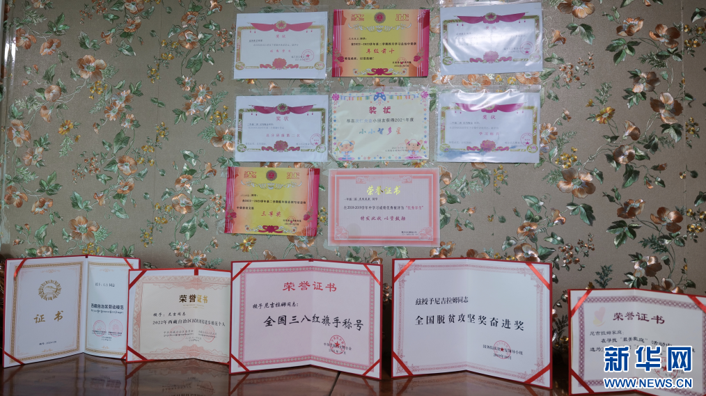 图为尼吉一家的荣誉墙(9月28日摄)。新华网 柑丹鸯琦摄