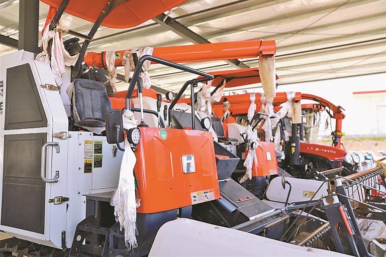 “秋收时节也是一样。”查斯回忆道,“哪怕只有几亩青稞,也需要很多人挥镰刀,从天亮割到天黑。收割完要捆扎、运到打麦场脱粒。脱粒时,踩场、扬场、筛粮,工序繁杂。直到粮食入库,差不多要一个月的时间。”如今,现代化农业机具的普及彻底改变了秋收图景。查斯指着身后的机器说道,“它们能一次性完成收割、脱粒、分离、清选甚至秸秆打捆。过去一户人家要干近一个月的活,现在两天就能全部完成。”