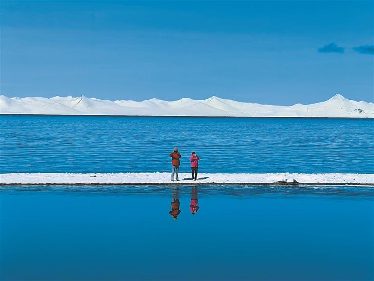 图为游客在普莫雍错游玩。记者 王敏 摄