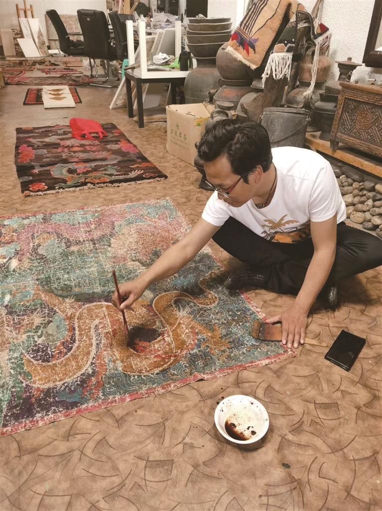 呷绒尼玛正在从事艺术创作。图由受访者提供
