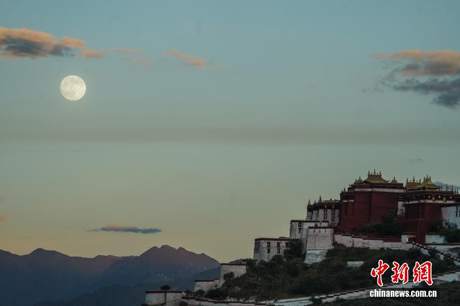10月6日中秋节,西藏拉萨,布达拉宫与圆月同框。中新社记者 贡嘎来松 摄