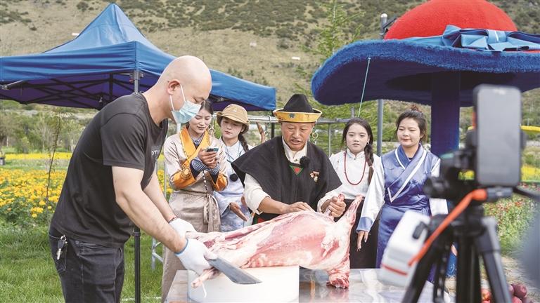 线上,直播带货引爆云端销量,本地主播齐聚直播间,掀起一场直播带货擂台赛。镜头前,主播们热情推介林芝水果、野生菌菇、特色干果等优质农产品,真正实现了“手机变农具、直播变农活、流量变销量”,为林芝农特产品插上“云翅膀”,飞向全国餐桌。线下,才艺比拼——为家乡代言乡镇推介秀环节精彩纷呈!各乡镇都使出浑身解数,用歌舞、走秀、小品等形式为家乡“带货”。