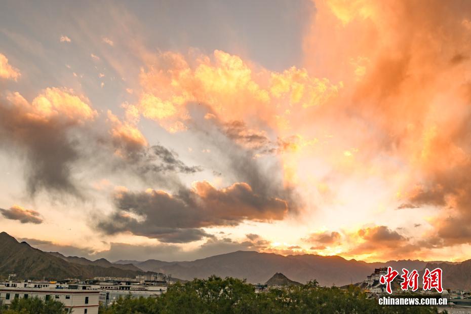 10月23日,西藏拉萨上空出现绚丽晚霞。中新社记者 贡嘎来松 摄