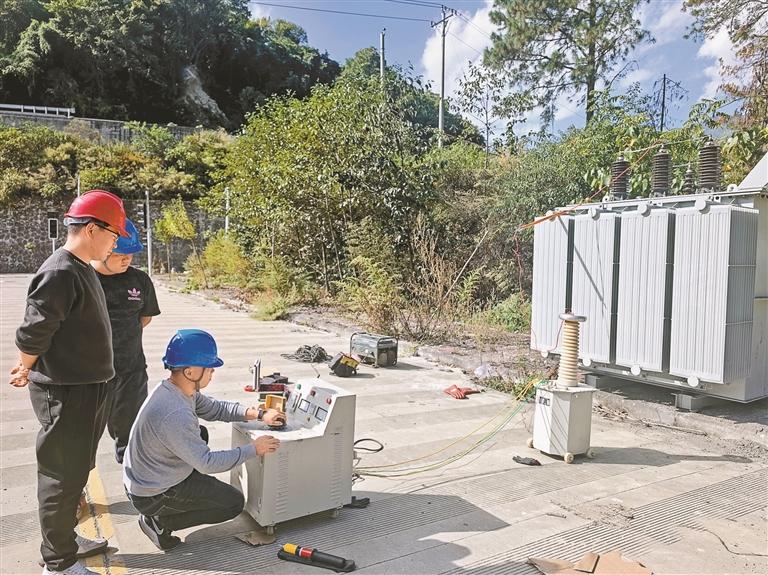 图为国网察隅县供电公司工作人员正在对变压器进行试验调试。记者 刘枫 摄