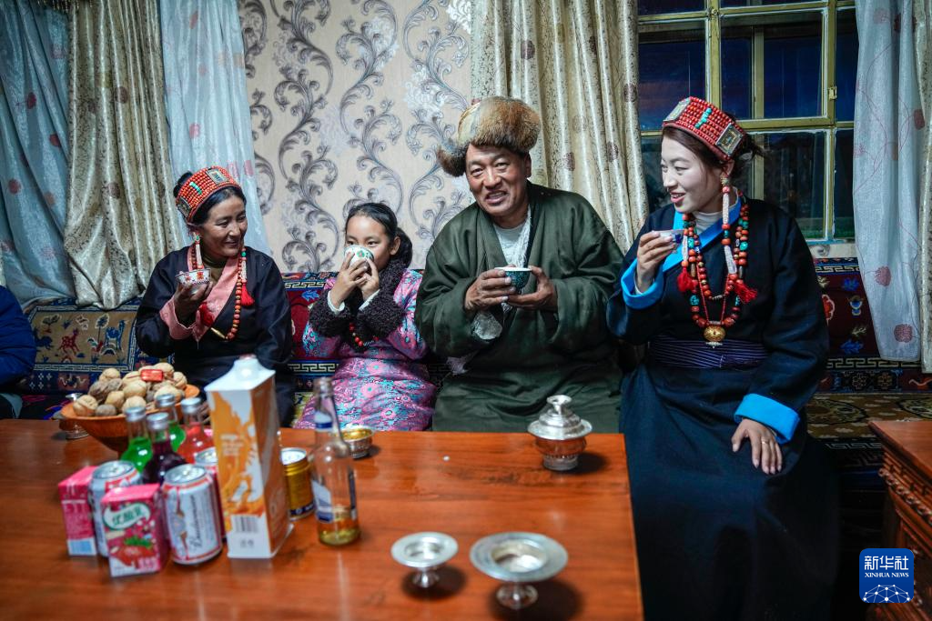 在普兰县科迦村,加央卓玛一家人在家里忙活着。一锅“古突”在火炉上冒着热气,家里已经摆上了“切玛”(五谷丰登斗),各式年货琳琅满目。今年,加央卓玛家里的青稞和豌豆喜获丰收。“现在的生活越来越好,新年也越过越热闹了。”加央卓玛笑着说。