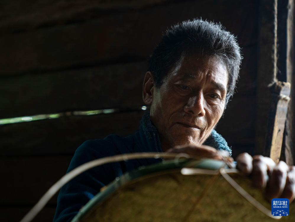 巴登村村民新向东在家编织竹筐(2022年4月15日摄)。新华社记者 晋美多吉 摄