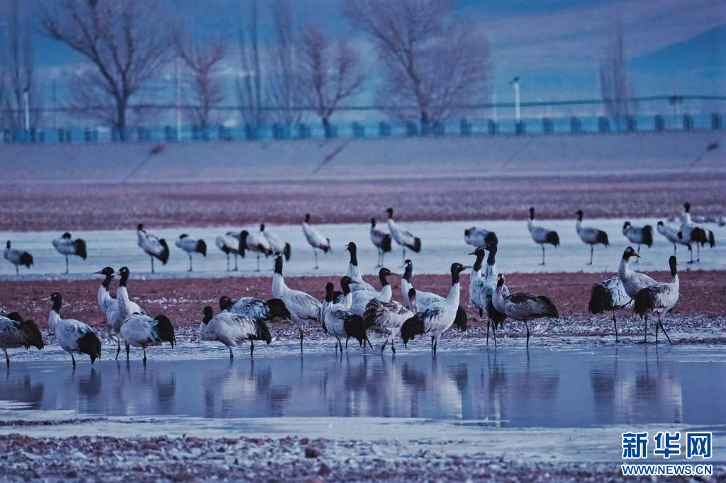 这是在拉萨市林周县越冬的黑颈鹤。(拉萨市文化和旅游局供图)