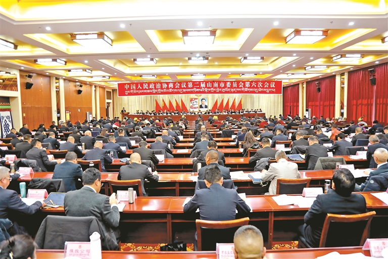 图为中国人民政治协商会议第二届山南市委员会第六次会议现场。