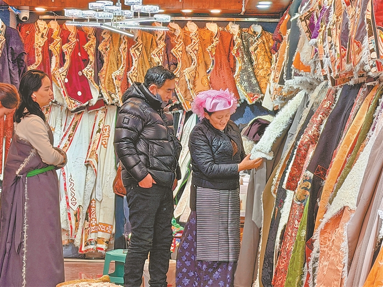 随着春节和藏历新年的临近,拉萨市各大年货市场人头攒动,购销两旺,呈现出一派喜庆祥和的节日氛围。