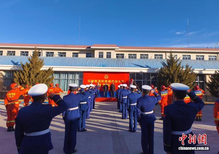 图为日喀则消防救援机动大队挂牌仪式现场。洛桑顿珠 摄