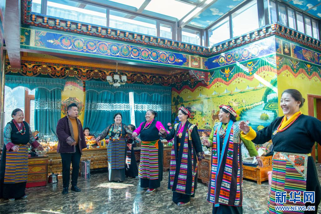 1月20日是藏历12月2日,也是日喀则农家新年初二。西藏自治区日喀则市桑珠孜区聂日雄乡楚松村村民多吉旺堆一家及亲朋好友相聚在家里,一起喝着青稞美酒,吃着香喷喷的牛羊肉,载歌载舞喜过农家新年。