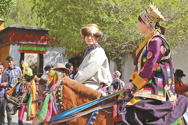 游客在琼结县步行街体验骑马。伦珠泽仁 摄