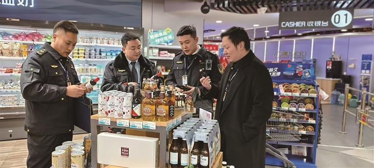 拉萨经开区市场监管局工作人员对商家食品进行抽查。图由拉萨经开区管委会提供