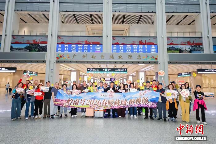 “2026西藏林芝桃花包列”主题系列团21日从广州出发,近200名游客坐上火车,奔赴雪域高原,邂逅雪山与桃花交织的春日盛景。