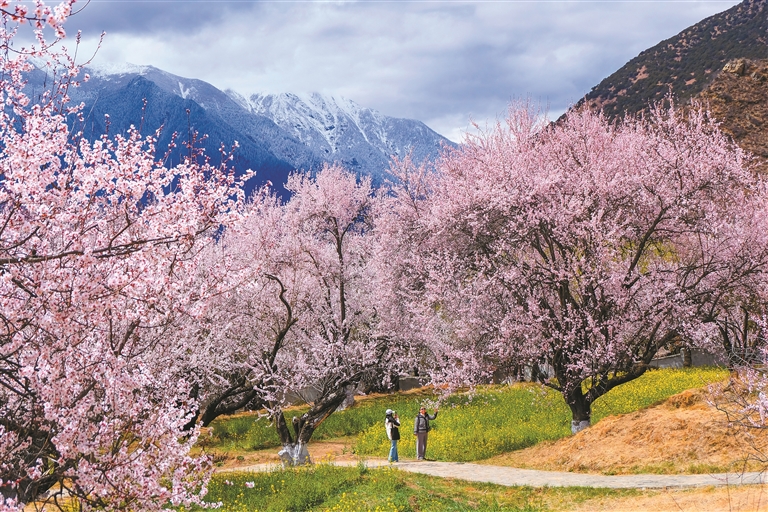 在林芝城郊的嘎拉村“桃花源”景区,全国各地游客慕名而至,人们徜徉花间步道,打卡春日盛景,沉浸式感受高原桃花的浪漫与生机。为满足游客多元化需求,嘎拉村结合实际,适当引入骑马射箭、藏装体验等民俗互动项目,进一步完善景区配套功能,增强游客的体验感,提升旅游经济附加值。