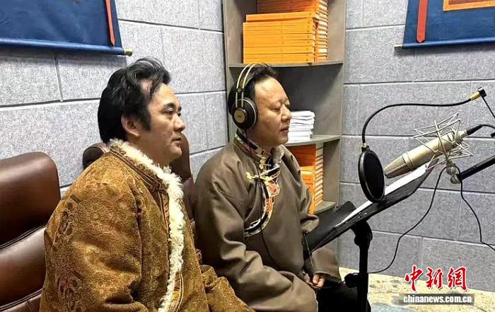 1月12日,《格萨尔》史诗说唱艺人在录制音频数据。(青海省格萨尔史诗保护研究中心 供图)