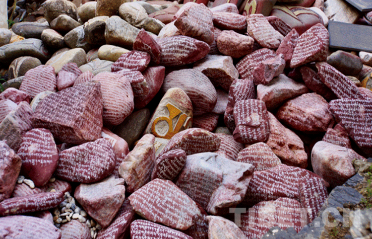 “玛尼”是藏传佛教经咒六字真言的简称,玛尼石发展到今天,每座神山、每个圣湖、每座寺庙、每个村子……无处不在。近些年,还有了刻满经文的“甘珠尔塔”——一部完整的《甘珠尔》,全部刻在石板上,然后将其堆叠起来,修葺成塔。